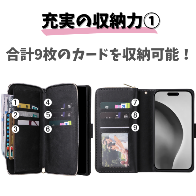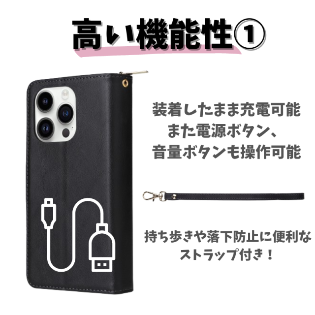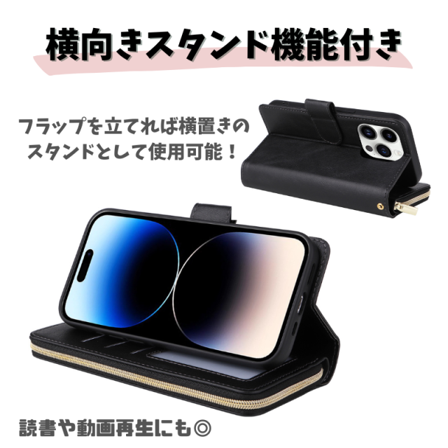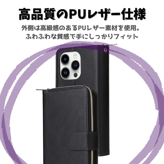 iPhone ケース 手帳型 レザー 財布 スマホケース 小銭入れ カードケース 17 17Air 17Pro 17ProMax 16 16e 16Plus 16Pro 16ProMax 15 15Plus 15Pro 15Promax 14 14Plus 14Pro 14Promax 13 13mini 13Pro 13ProMax 12シリーズ 11シリーズ Xシリーズ SE 8 7 手帳 財布型 ブラック
