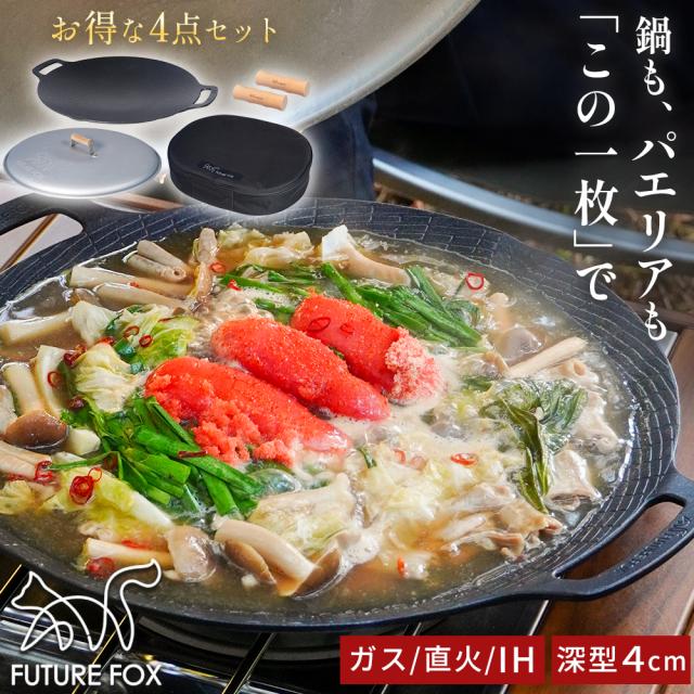 FUTUREFOX マルチグリドル 鉄板 深さ4cm 深型 直径32cm 蓋付き 4点セット (本体+蓋+ハンドル+収納ケース)