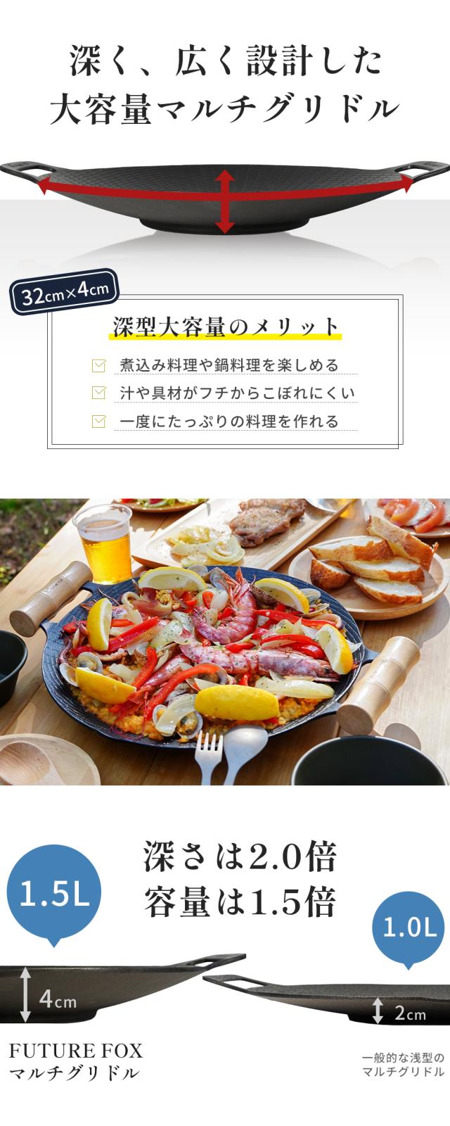 業界トップクラスの深さ4cmを誇るFUTURE FOXのマルチグリドル。