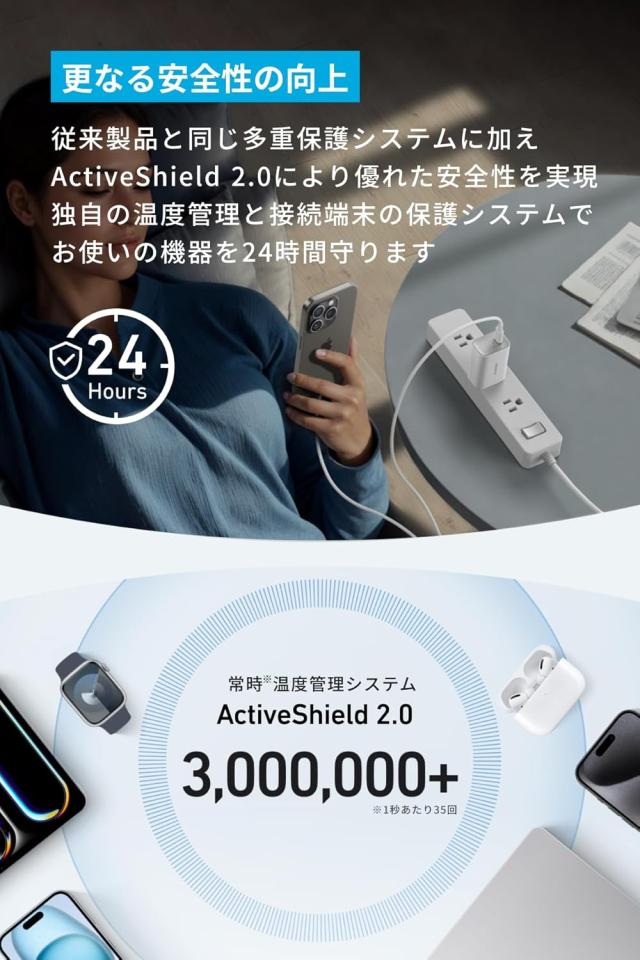 従来製品と同じ多重保護システムに加え、ActiveShield? 2.0により優れた安全性を実現。独自の温度管理と接続端末の保護システムでお使いの機器を24時間守ります。