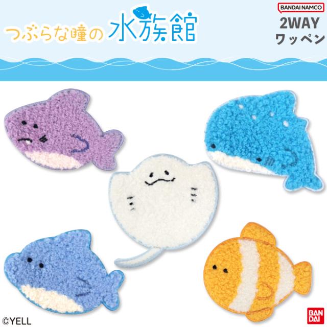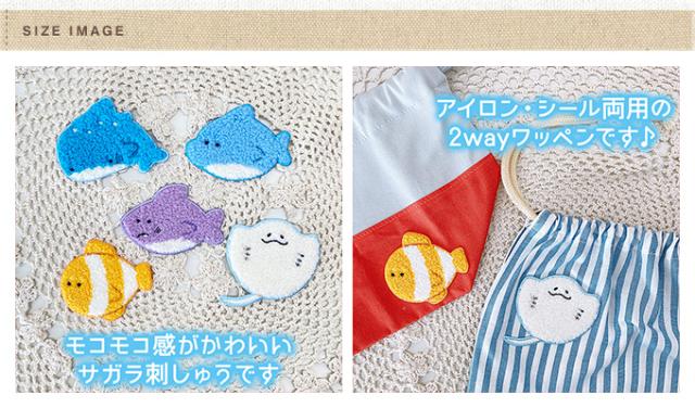 つぶらな瞳の水族館 ワッペン サガラ アイロン シール かわいい 刺繍 キャラクター グッズ プレゼント 服