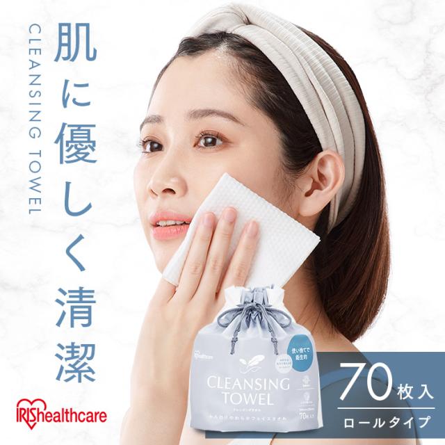 ★レビュー投稿でポイント還元★ クレンジングタオル フェイスタオル 使い捨て メイク落とし ロールタイプ アイリスオーヤマ TSC-70R クレンジング タオル シート ロール やわらか 顔 手 拭き取り 厚手