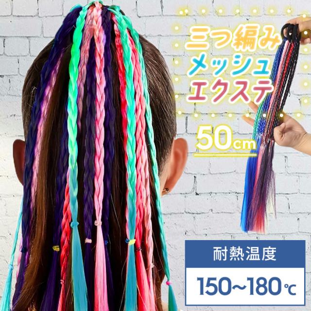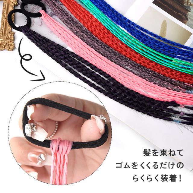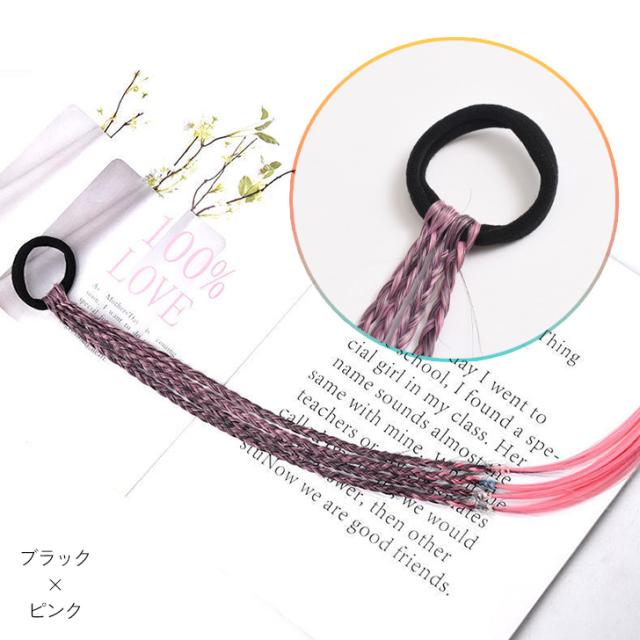 新作 選べる6カラー ロング 三つ編み ヘアゴム メッシュ エクステ レディース キッズ 子供 メッシュエクステ ワンタッチ ゴム 編み込み ウィッグ 部分ウィッグ ポイントウィッグ つけ毛 コスプレ 衣装 ダンス