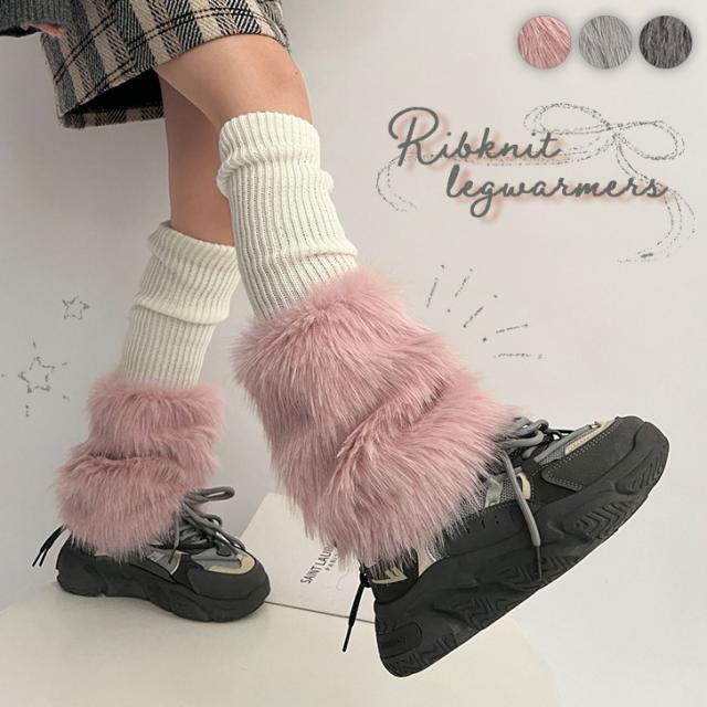 新作 ふわふわ フェイクファー ルーズ リブニット レッグウォーマー レディース レッグカバー レッグウェア 靴下 ソックス ルーズソックス くしゅくしゅ ファー ボリューム おしゃれ 秋冬 防寒 あったか 暖かい