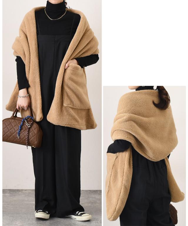 新作 ポケット付き 大判 もこもこ ボア ストール マフラー ショール ボアストール 羽織り ひざ掛け レディース ファー厚手 秋 冬 あったか 暖かい 防寒 寒さ対策 おしゃれ かわいい 大人 上品 きれいめ 韓国