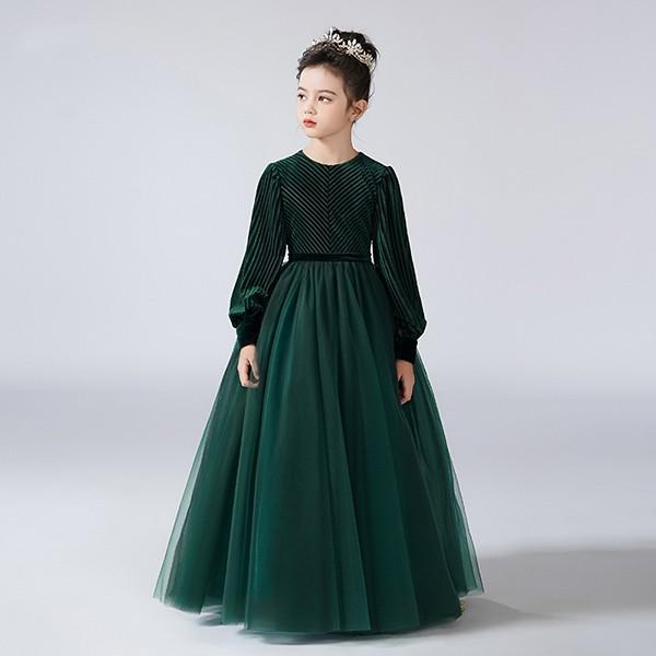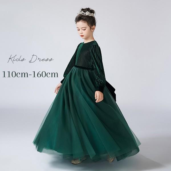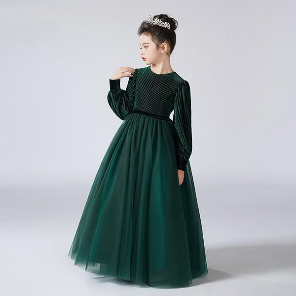 キッズドレス ピアノ発表会 ドレス 中学生 ワンピース ジュニアドレス 七五三 子供ドレス ロングドレス ピアノ発表会 子供 ドレス チュール 女の子 フォーマルドレス パーティードレス 結婚式 七五三 発表会 フラワーガール グリーン bg138zezem5