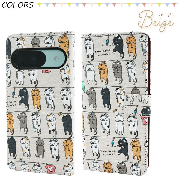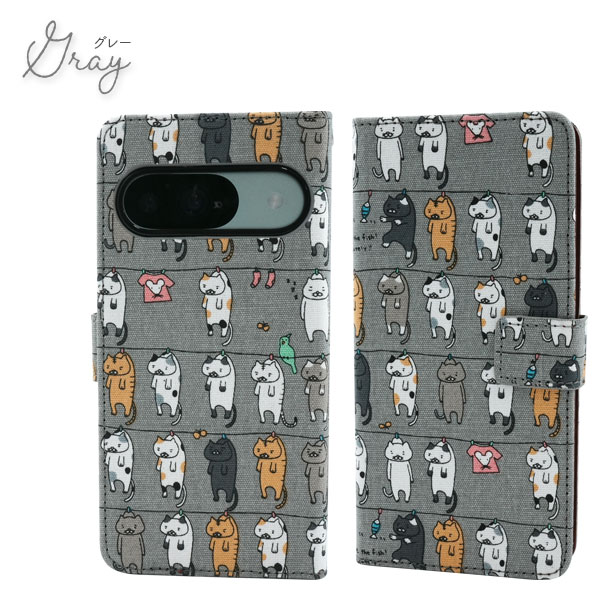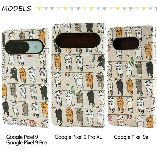 スマホケース Google Pixel 9/9Pro/9ProXL/9a 用 干されてる 手帳タイプ ネコ ねこ 猫柄 にゃんこ グーグルピクセル カバー ケース ドコモ au ソフトバンク スタンド かわいい 布製 保護ケース 保護カバー カード入れ