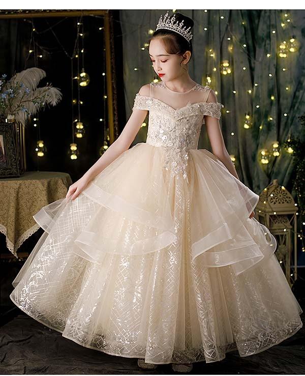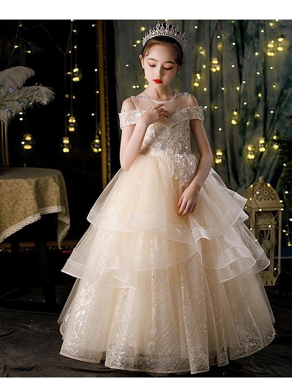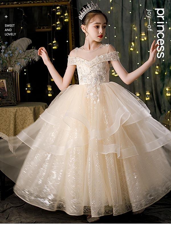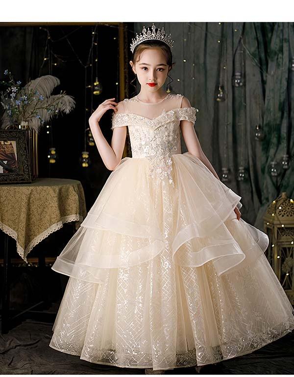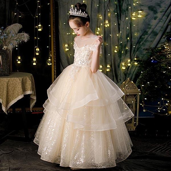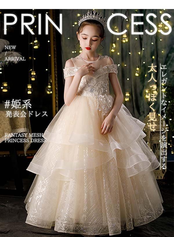 キッズドレス ピアノ発表会 ドレス 姫系 ワンピース 女の子 ロングドレス キラキラ ガール 子供ドレス 袖あり 半袖付き 演奏会 フラワーガール ベールガール リングガール プリンセスドレス ブライダル フォーマル 七五三 100 110 120 130 140 150 160 dt255x1x1m5