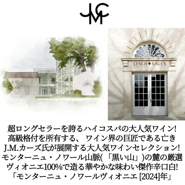超ロングセラーを誇るハイコスパの大人気ワイン! 高級格付を所有する、ワイン界の巨匠である亡き J.M.カーズ氏が展開する大人気ワインセレクション! モンターニュ・ノワール山脈(「黒い山」)の麓の厳選 ヴィオニエ100%で造る華やかな味わい傑作辛口白! 「モンターニュ・ノワール・ヴィオニエ[2023]年」