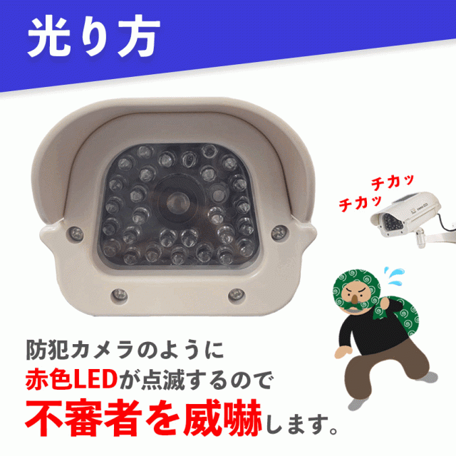 防犯カメラのように赤色LEDが点滅するので、不審者を威嚇します。