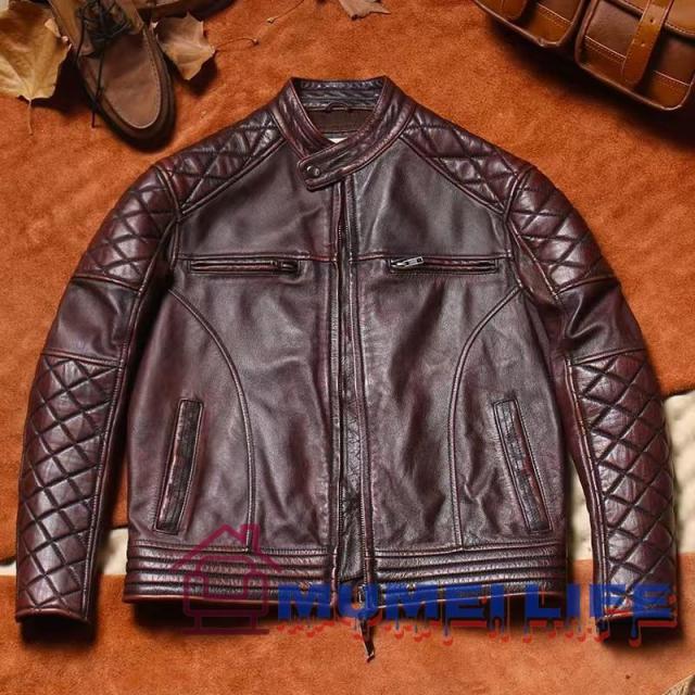 重磅 トップレイヤーの牛革 ジャケット レトロ 本革レザージャケット メンズスタンドカラー 本革ジャケット ヴィンテージ風の茶色の加工済み