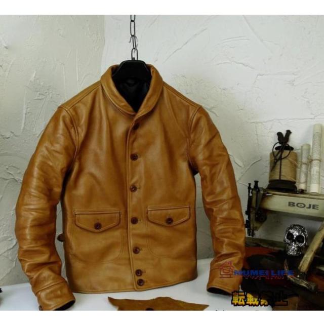 超人気☆カウハイド 復刻20's A-1タイプ コサックジャケット キャメルブラウン タンニンなめし 染料仕上げ オイルレザー 牛革