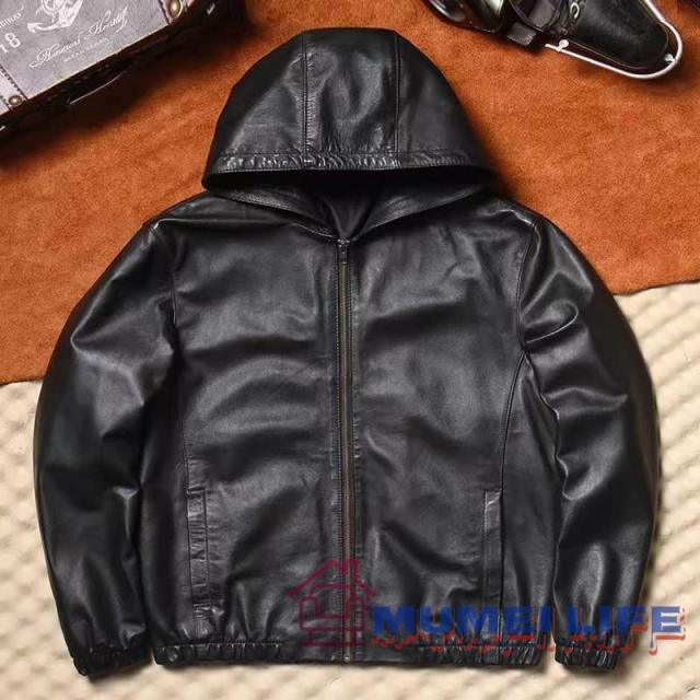 新款 高級しいフード付きのレザージャケット 高級羊革 本革のレザージャケット カジュアルで万能なアウターです