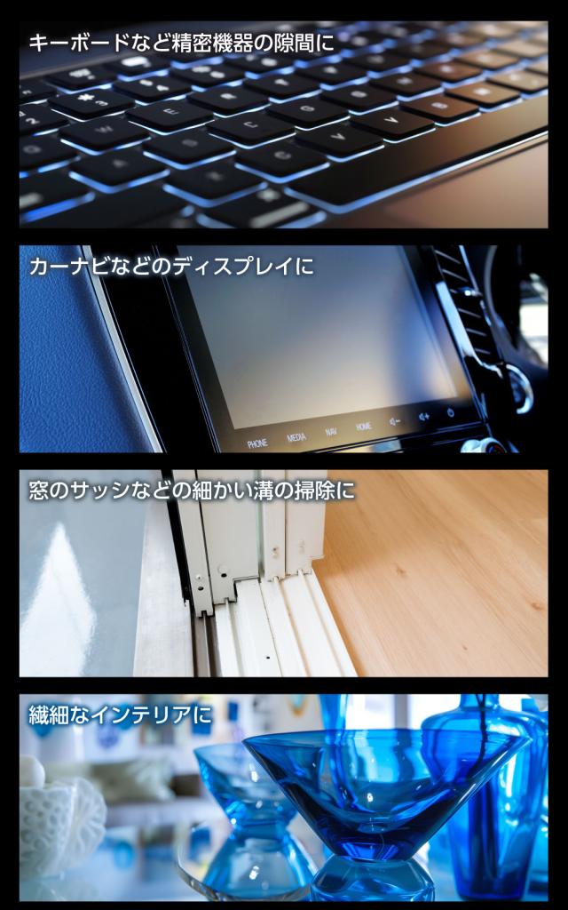 | 商品説明 | 傷つきやすい表面や細かい場所の掃除に適しています。 【使用場所】 ・キーボードなどの精密機器の隙間 ・カーナビ、テレビなどのディスプレイ ・窓のサッシなどの細かい溝 ・繊細なインテリア …などにご使用ください。 |