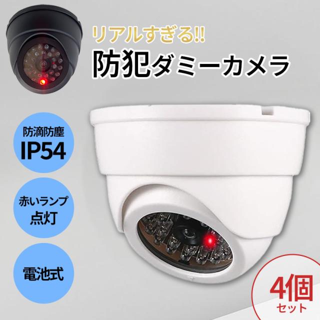 ダミーカメラ ドーム型 4個セット 防犯 防犯グッズ 屋内 屋外 監視カメラ ダミー 防犯カメラ 偽物 偽 電池式 セキュリティ 対策 壁付け 屋根 軒下 ランプ 点滅 空き巣 泥棒 家 自宅 お店 マンション アパート 犯罪 防止 壁 玄関 セキュリティー 闇バイト 侵入防止 小型 小さい