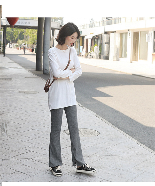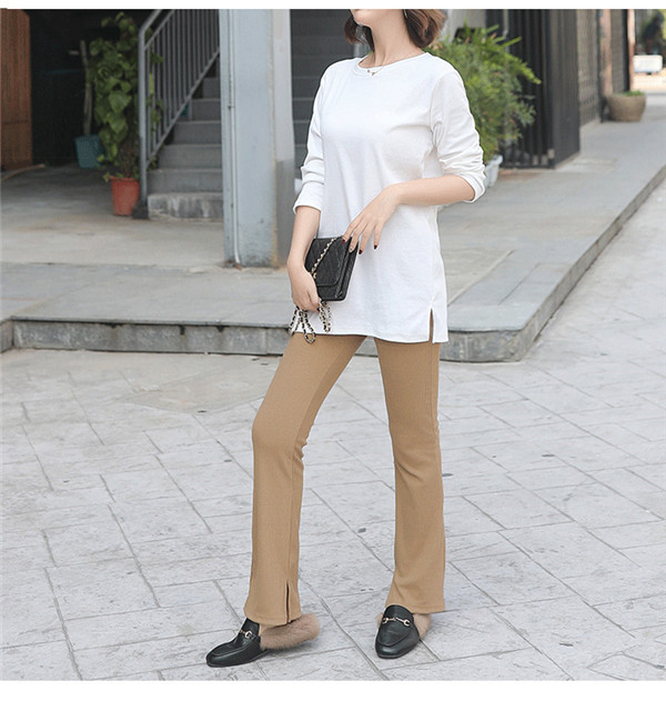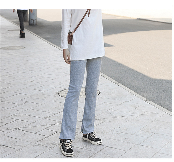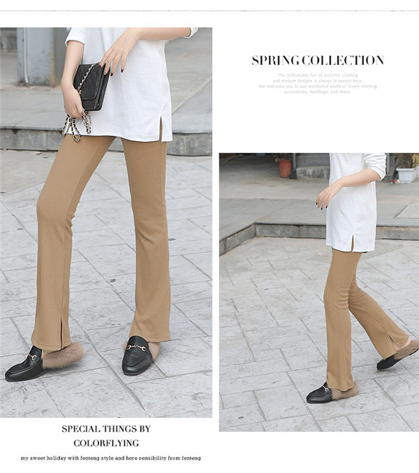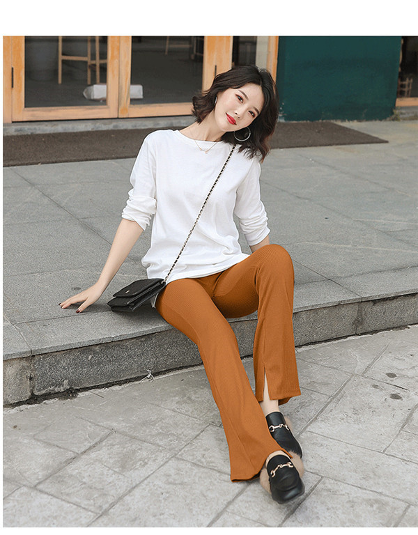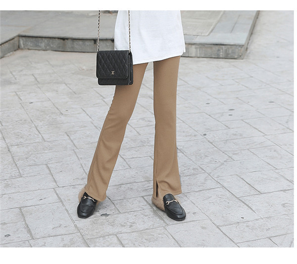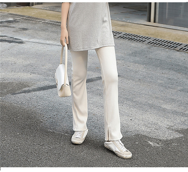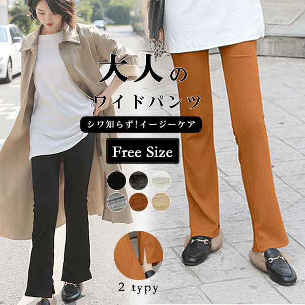 スリットパンツ リブ レディース 裹起毛 ハイウエスト ウエストゴム きれいめ パンタロン 秋冬 体型カバー おしゃれ 可愛い 着痩せ おしゃれ