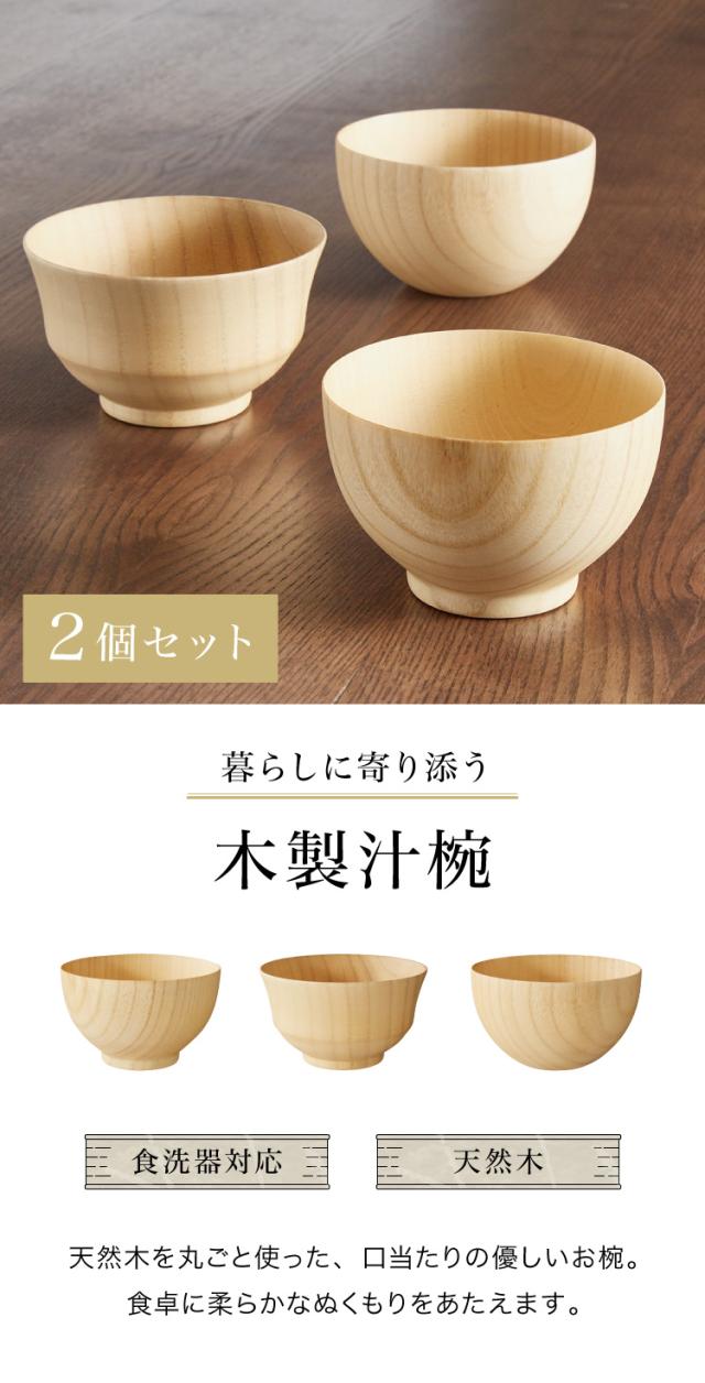 2個セット お椀 食洗機対応 木製 天然木 汁椀 ナチュラル 大和型 ボール型 モダン型 木のお椀 木の器 味噌汁椀 スープ ボウル 食器 和食 洋食 コーティング おしゃれ(代引不可)【送料無料】