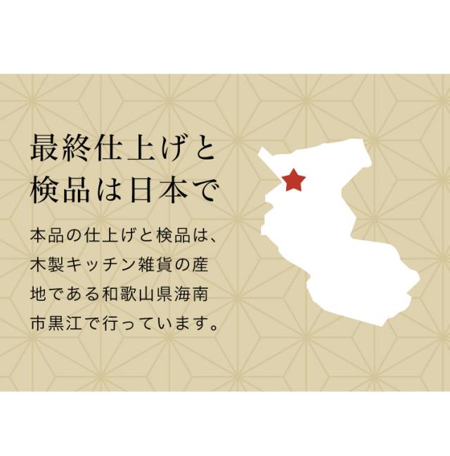 木製キッチン雑貨の一大産地「和歌山県海南市黒江」で製品の仕上を行い、検品された商品をお届けいたします。