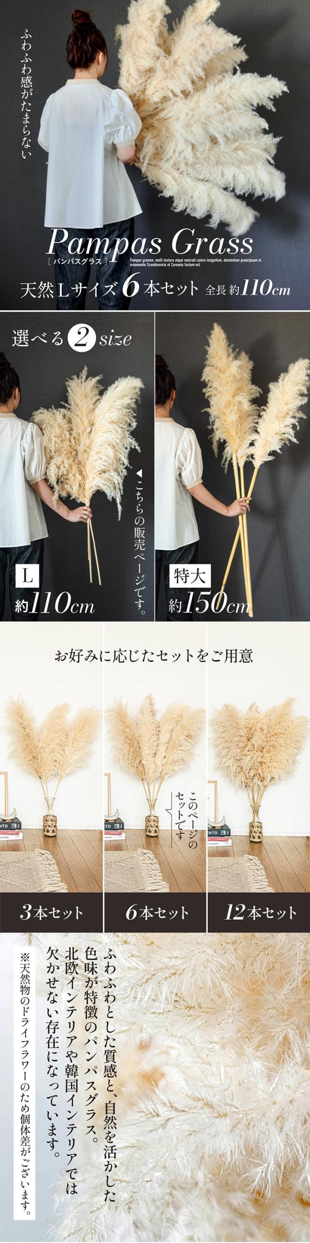 ドライフラワー 天然 穂 インテリア スワッグ 花束 花材 観葉植物 リース ブーケ おしゃれ シンプル 北欧 韓国 ふわふわ リビング ダイニング 和室 玄関 PampasGrass(パンパスグラス) Lサイズ 110cm 6本セット