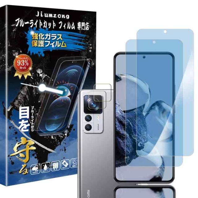 【ブルーライトカット 93%】【目の疲れ軽減】Xiaomi 12T Pro 用の(2枚入り)ガラスフィルム+(2枚入り)カメラフィルム Xiaomi 12T 用の 液晶保護 フィルム 保護ガラス レンズ保護フィルム
