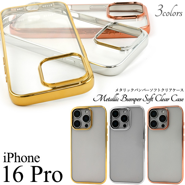 スマホケース iPhone16Pro メタリックバンパーソフトクリアケース ソフトケース アイフォン16プロ 背面 保護 カバー 光沢 無地 柔らかい シンプル アイホン スマホカバー アイフォン iPhone 16Pro アイフォン16Pro 金 銀 ピンク おしゃれ