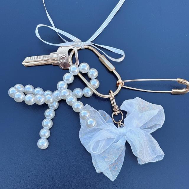 【送料無料】韓国 リボン パール キーホルダー キーリング