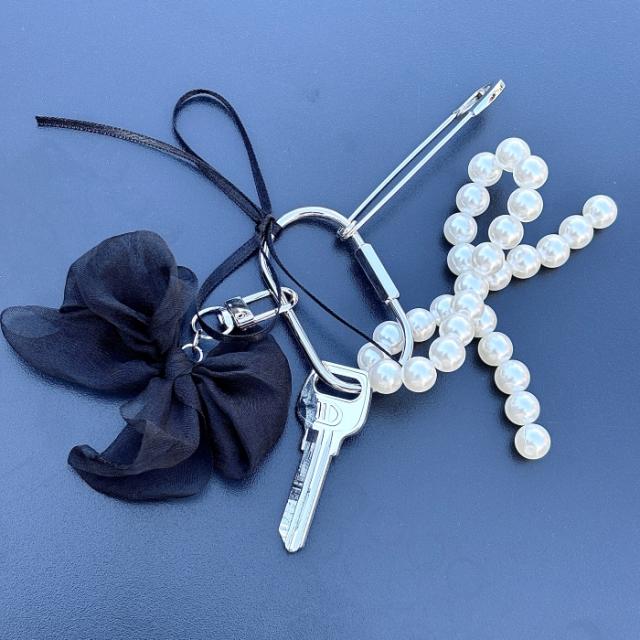 韓国 リボン パール キーホルダー キーリング lattencos ラテアンドコス 新大久保から発送