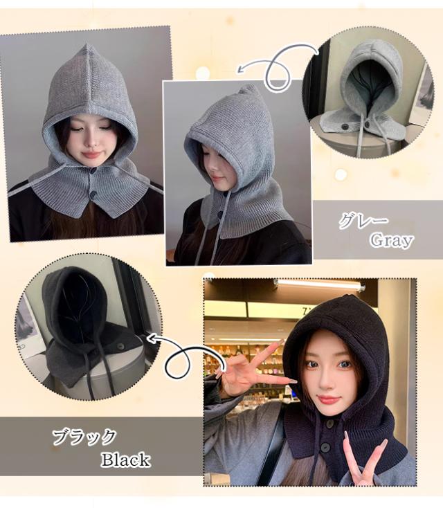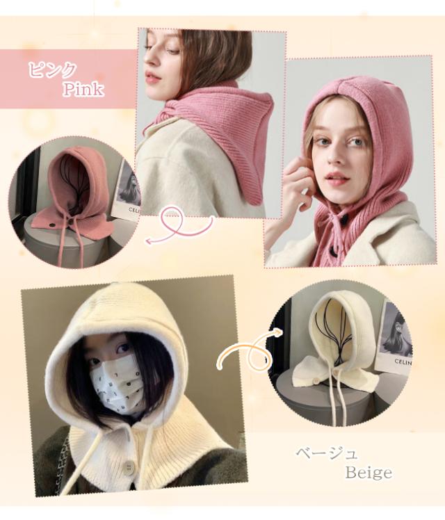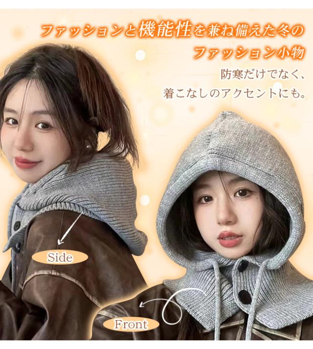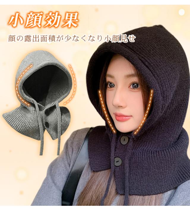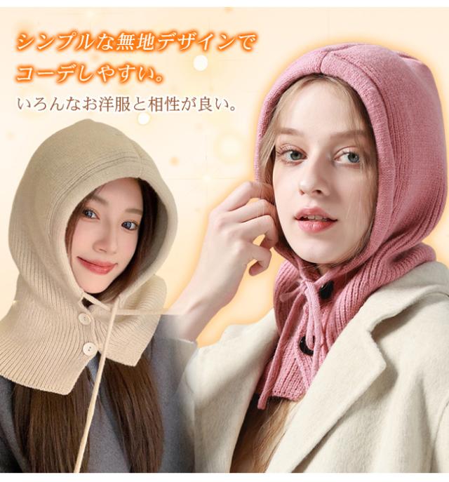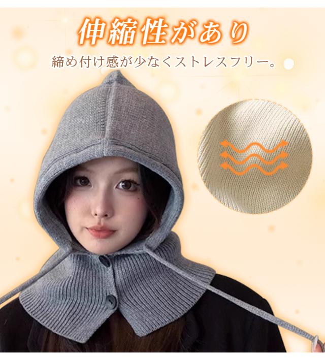 【 5% オフクーポン】新作 ニット帽子 ネックウォーマー 紐付き コーデ あったか 防寒対策 可愛い 小顔効果 レディース おしゃれ 通勤 フード ハット 耳保護 厚手 秋冬 アウトドア