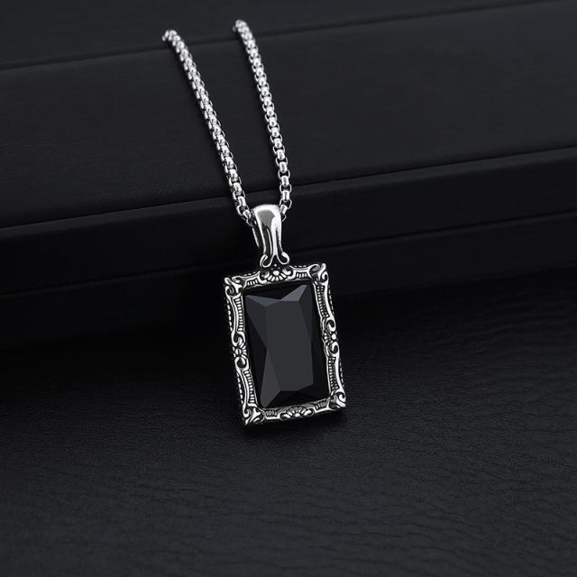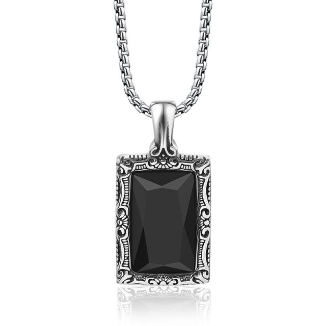 ネックレス メンズ 黒宝石ネックレス おしゃれ 長方形ペンダント ステンレス 金属アレルギー対応 彼氏 父の日 誕生日 プレゼント