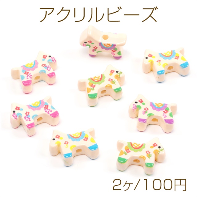 アクリルビーズ アニマルビーズ 馬ビーズ うまビーズ ウマビーズ 縦穴 ランダム発送 約18×23mm (2ヶ)