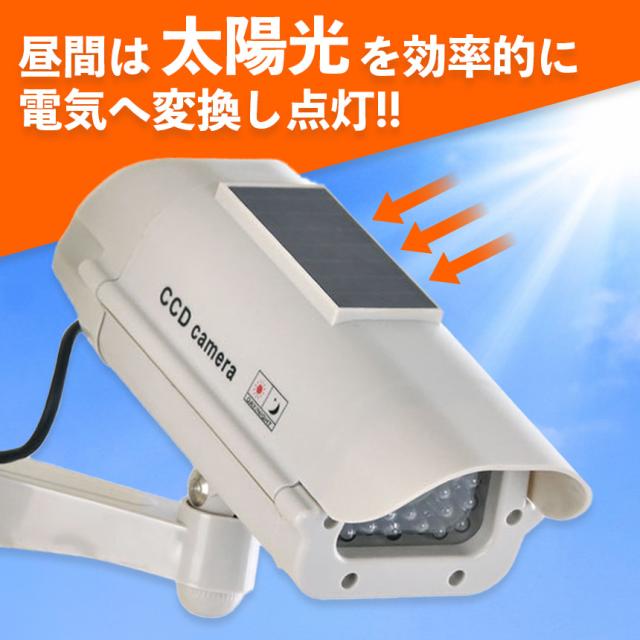 防犯カメラのように赤色LEDが点滅するので、不審者を威嚇します。