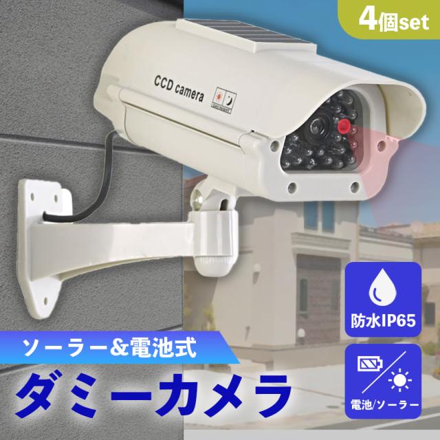 ダミーカメラ 防犯 4個セット 防犯グッズ 屋内 屋外 監視カメラ ダミー 防犯カメラ 偽物 偽 ソーラーパネル 電池式 ソーラー 防水 セキュリティ 壁付け ランプ 点滅 空き巣 泥棒 家 お店 マンション アパート 犯罪 防止 壁 玄関 セキュリティー 闇バイト 侵入防止 白 ホワイト