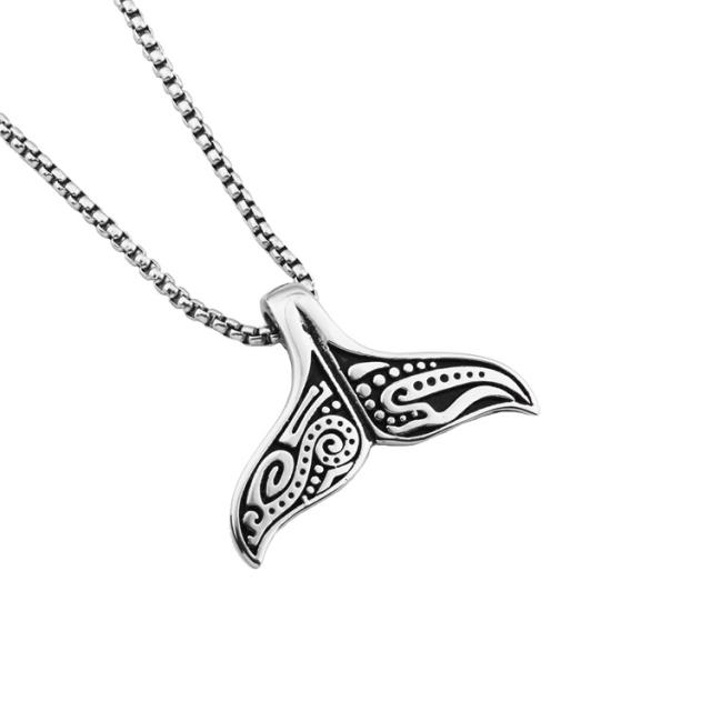 メンズネックレス クジラのしっぽ ステンレスネックレス メンズ ホエールテール クジラ 鯨 しっぽ 尾 お守りネックレス 金属アレルギー対応 彼氏 父の日 誕生日 プレゼント