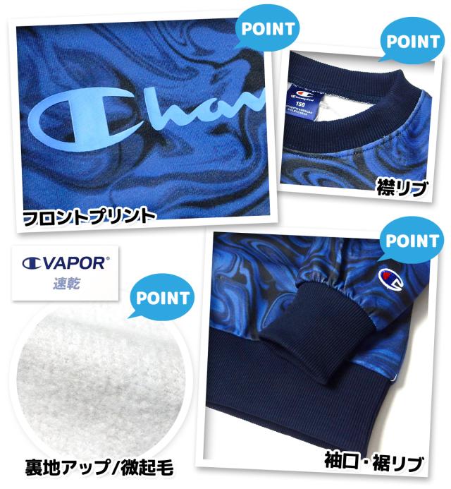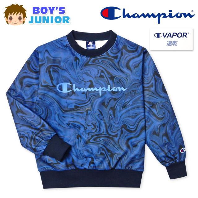 【送料無料】男児 ジュニア 裏起毛 長袖 スウェット シャツ Champion/チャンピオン 吸汗速乾 あったか素材 保温性 子供服 男の子 140cm 150cm 160cm td-0830a-nv【メール便対応】