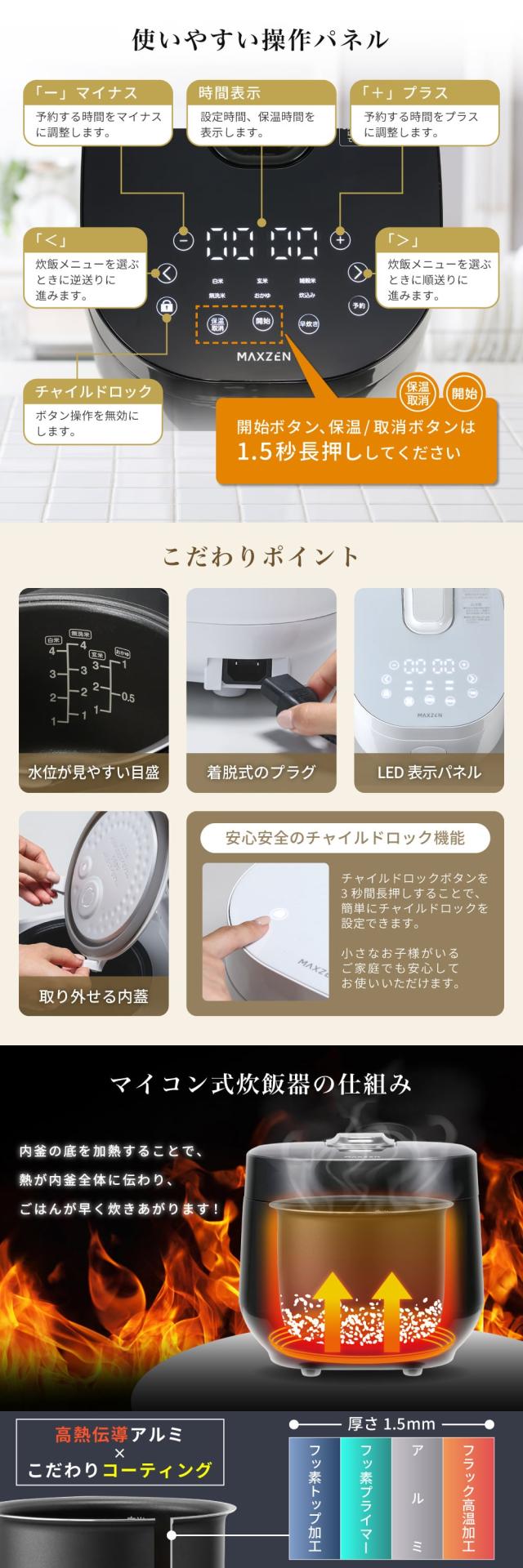 【期間限定ポイント5倍 4/20 10時まで】 炊飯器 4合 一人暮らし 二人暮らし マイコン式 7種の炊飯メニュー 予約 保温 早炊き 無洗米 玄米 チャイルドロック お手入れ簡単 シンプル コンパクト ブラック MRC-TX401 マクスゼン