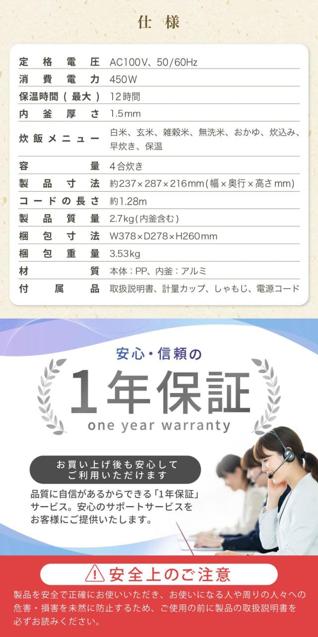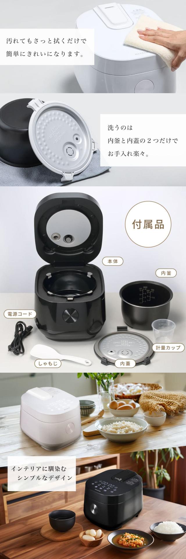 * 付属品:取扱説明書、計量カップ、しゃもじ、電源コード