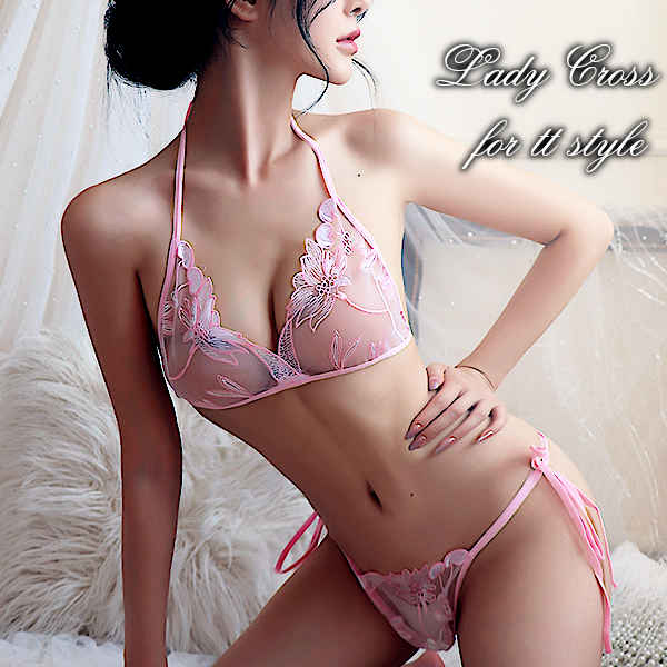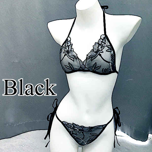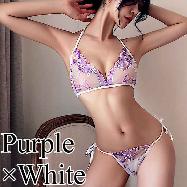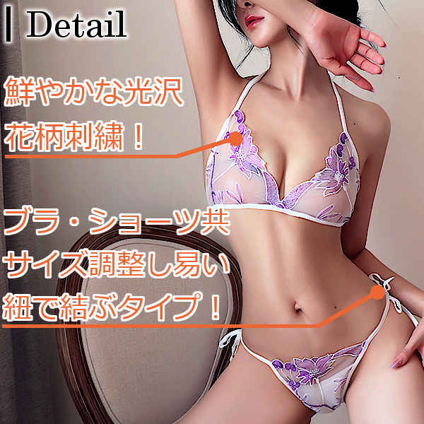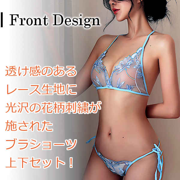 シースルーの花柄レースを基調にしたセクシーブラ&ショーツ。