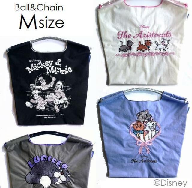 正規品 BALL&CHAIN ボールアンドチェーン バッグ エコバッグ Mサイズ DISNEY ディズニー MICKEY ミッキーマウス THE ARISTOCATS アリストキャット MARIE マリー LUCIFER ルシファー シンデレラ ネコ ホワイト 白 ピンク グレー