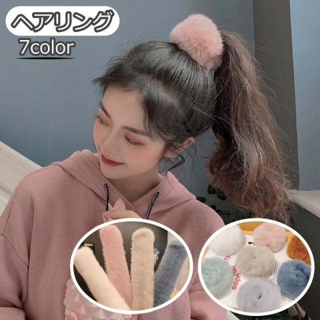 ヘアリング ヘアアクセサリー ヘアゴム シュシュ レディース 女性 髪飾り ポニーテール お団子 ロール フェイクファー かわい