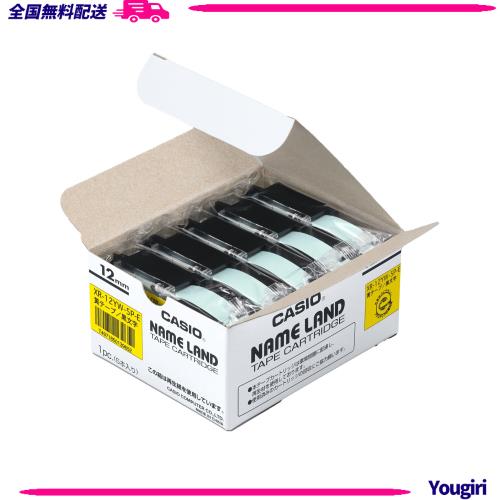カシオ ラベルライター ネームランド 純正 テープ 12mm XR-12YW-5P-E 黄地に黒文字 5本