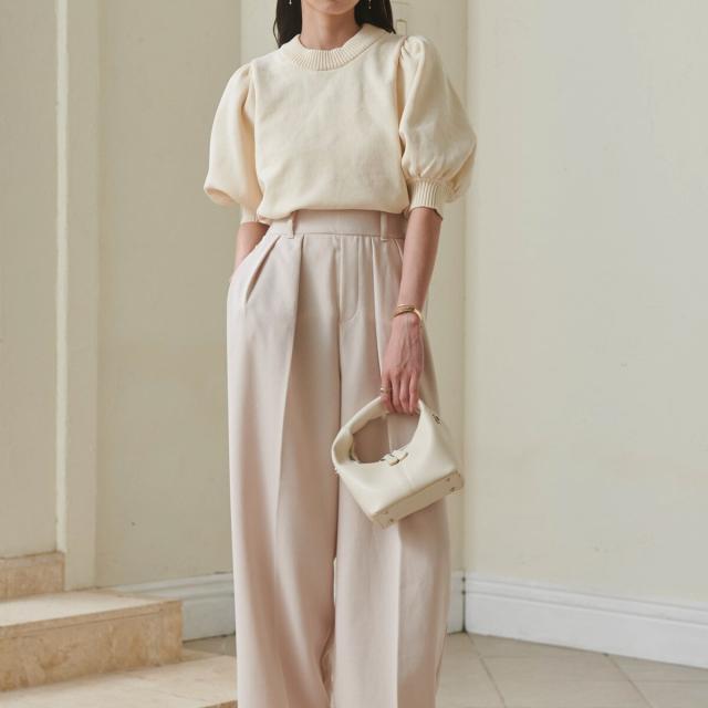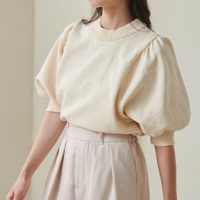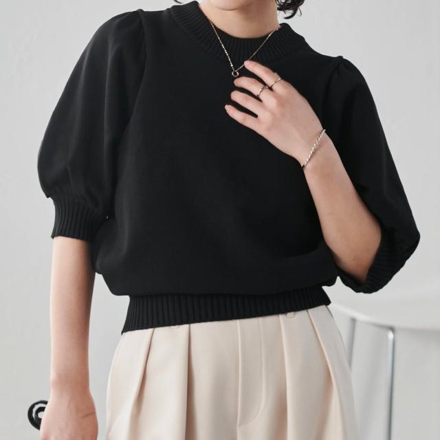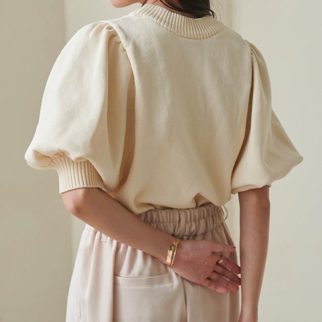 ボリュームパフスリーブニットトップス