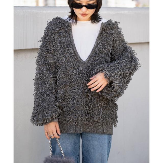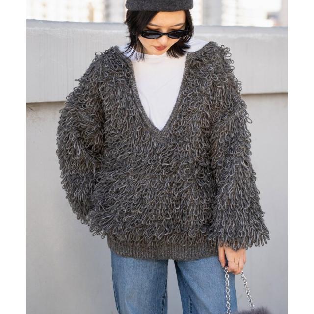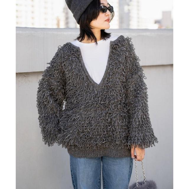 ボリュームたっぷりなループヤーンニットは、前後2WAYで着回せるスペシャルな一着。
