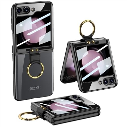 Galaxy Z Flip5 ケース クリア リング付き Samsung ギャラクシー Z Flip5 / SC-54D / SCG23 用 カバー 純正 おしゃれ OURJOY スマホケース 耐衝撃 電気メッキ アクセサリー 軽量 薄型 ストラップホール付