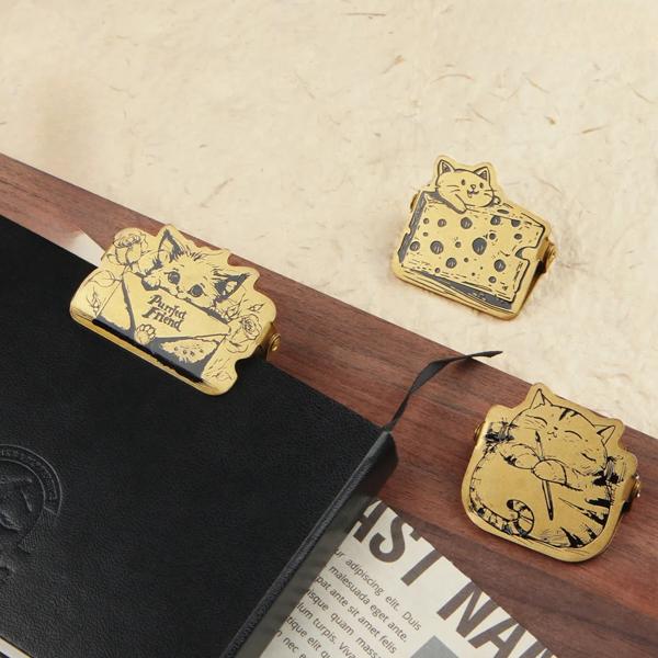 猫のような真鍮のペーパークリップ かわいい日記の装飾 ノートブック 日記 プランナー 文房具 DIY