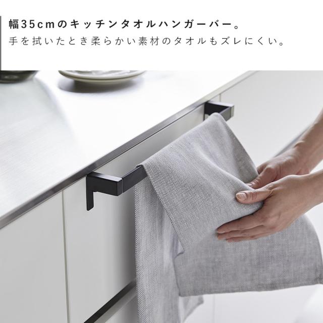 シリコーンでタオルの滑り落ちを防止する、幅35cmのワイドなキッチンタオルハンガーバー。キッチンタオルと拭き上げタオルを同時に収納可能。