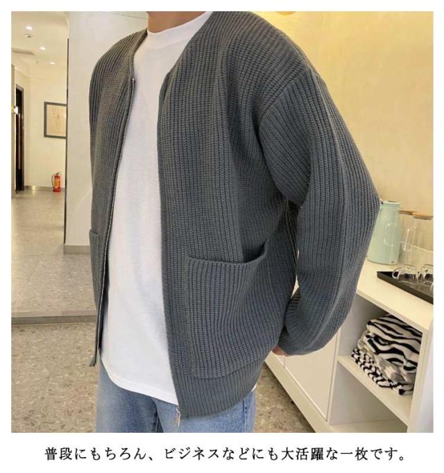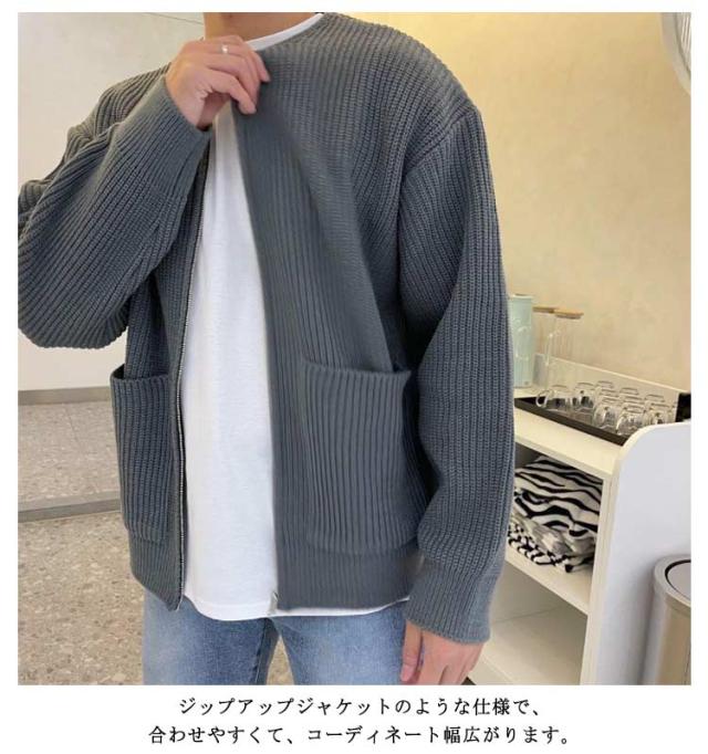 トップス 長袖 ジップアップ 大きサイズ ニットカーディガン 秋冬 セーター 春 ニット カーディガン 羽織り ポケット付き ジップアップ ジャケット 紳士 30代 40代