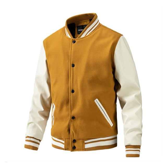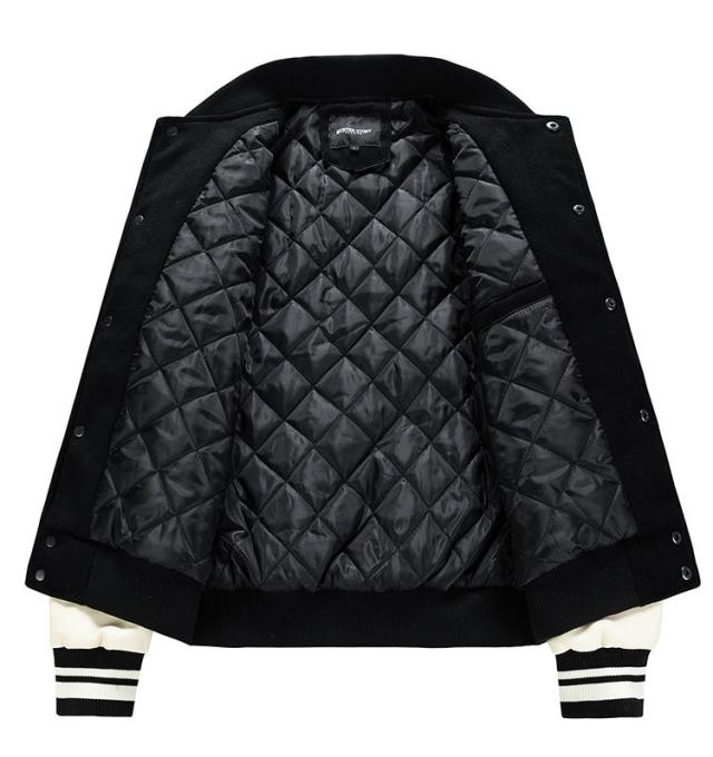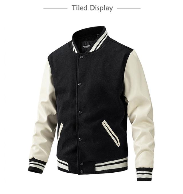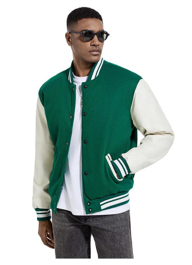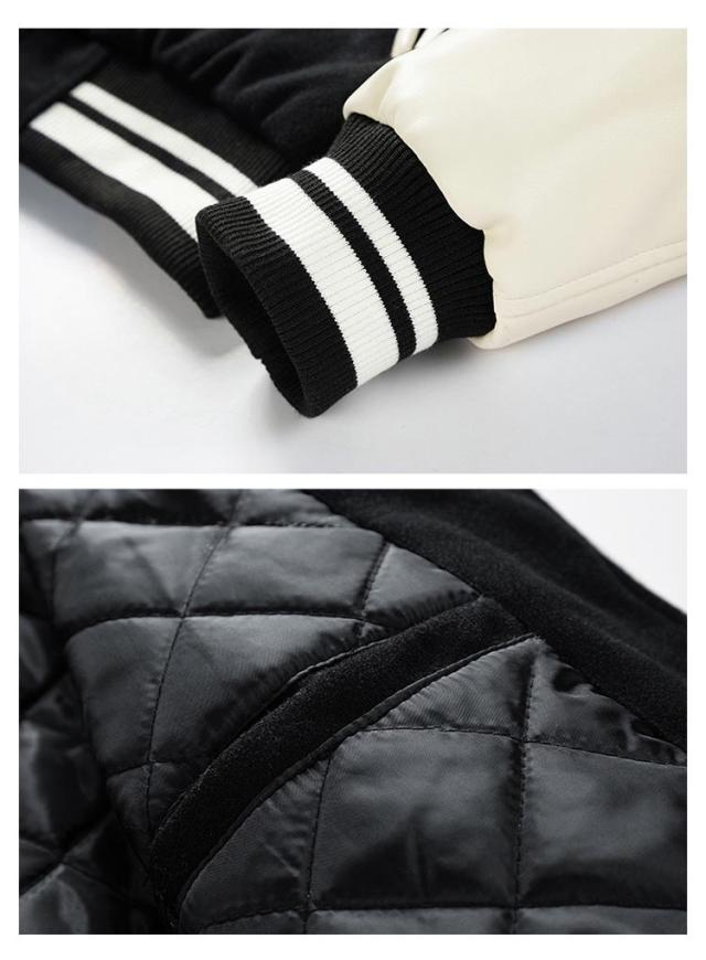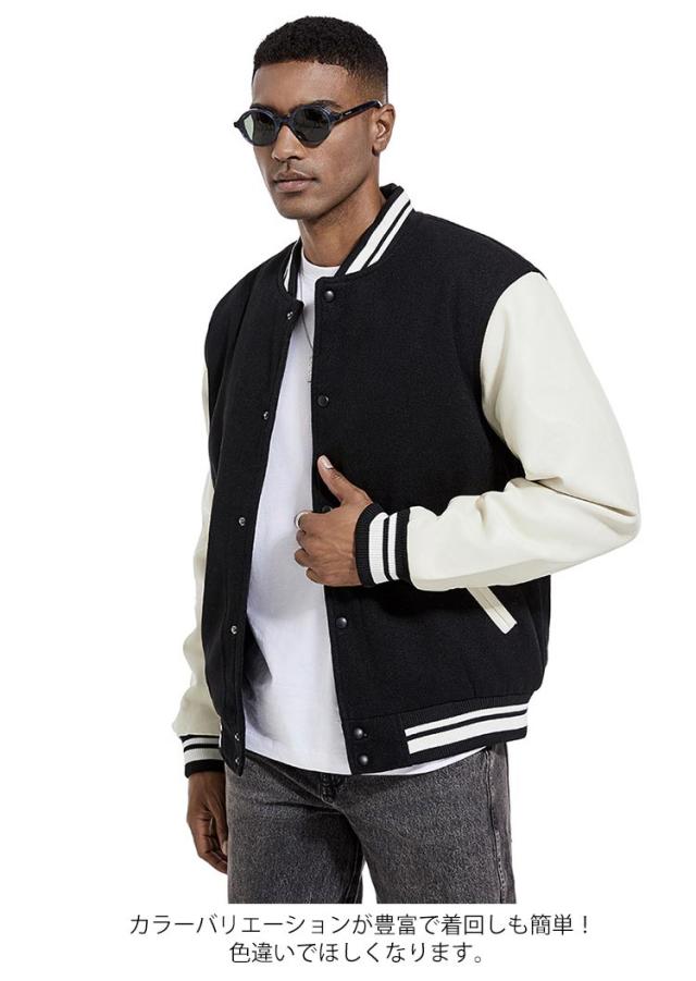 スタジアムジャンパー メンズ ブルゾン メルトン メンズジャケット 中綿 PU袖 スタジャン 野球服 男性用 通学 冬服 秋服 ライン入り 秋冬 厚手 カジュアル ストリート メルトン 通勤