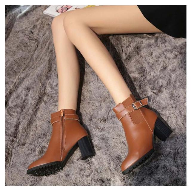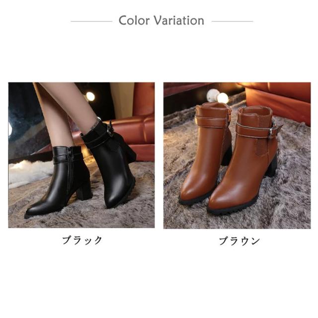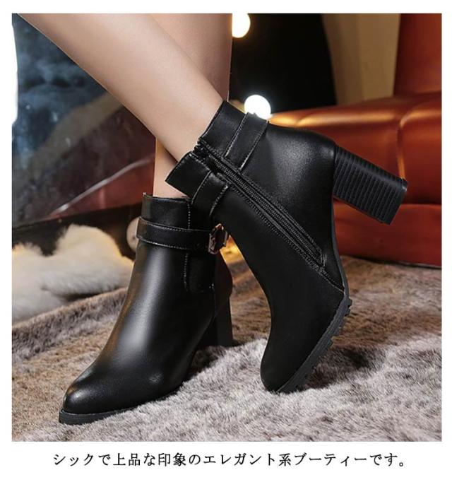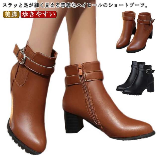 背が高く見える 太めヒール レディース ハイヒール 靴 ブーティー 美脚 シューズ ショートブーツ 歩きやすい ブーツ 疲れない 身長アップ 秋冬 合皮 パーティー 結婚式