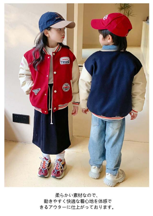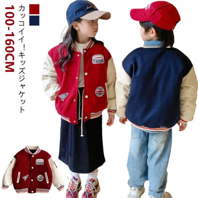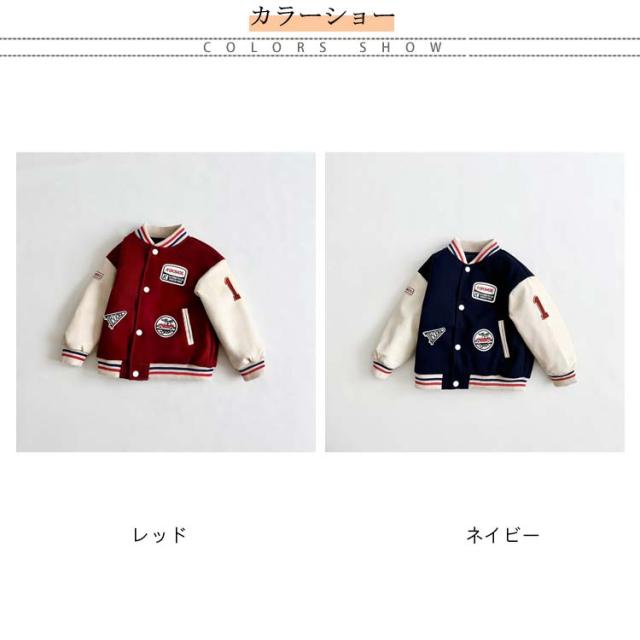 バイカラー ブルゾン キッズ ジャケット ジャンパー 野球服 スプリングコート 厚手 秋 スタジャン 長袖 ボーイズ 通気性抜群 子供服 男の子 女の子 ジュニア シンプル 女児 男児 アウター 春 上着 スウェット 防寒 ネイビー