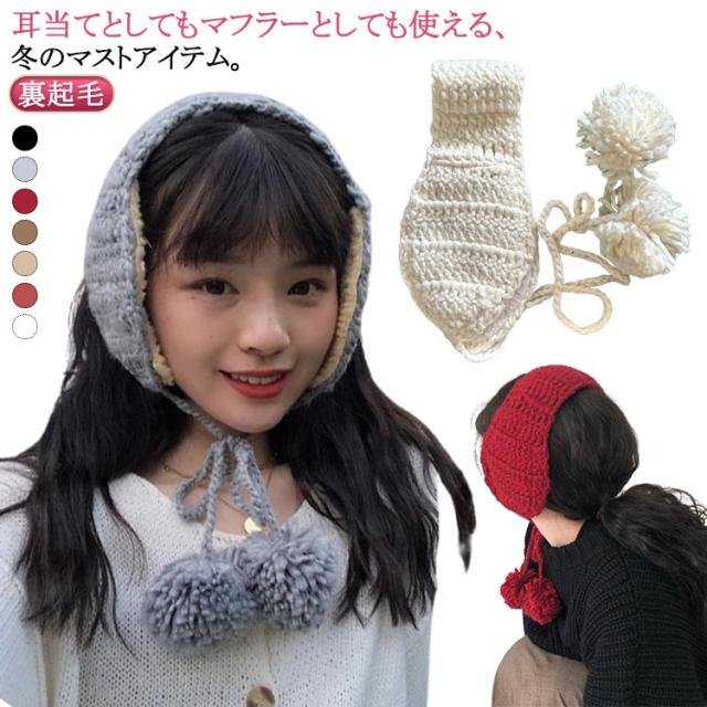 耳当て あったか ケーブル編み ニット マフラー 耳あて ニット帽 レディース イヤーマフ イヤーウォーマー イヤーマフラー モコモコ ふわふわ 防寒 ミニマフラー 可愛い イヤーカバー 耳あて 耳カバー ポンポン付き 裏起毛 寒さ対策 子ども用 無地 おしゃれ 通勤